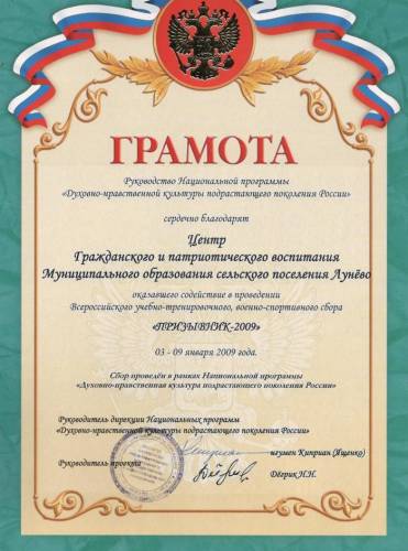 22 сентября 2010 года состоялось награждение автономного учреждения «Центр гражданско-патриотического воспитания молодежи».